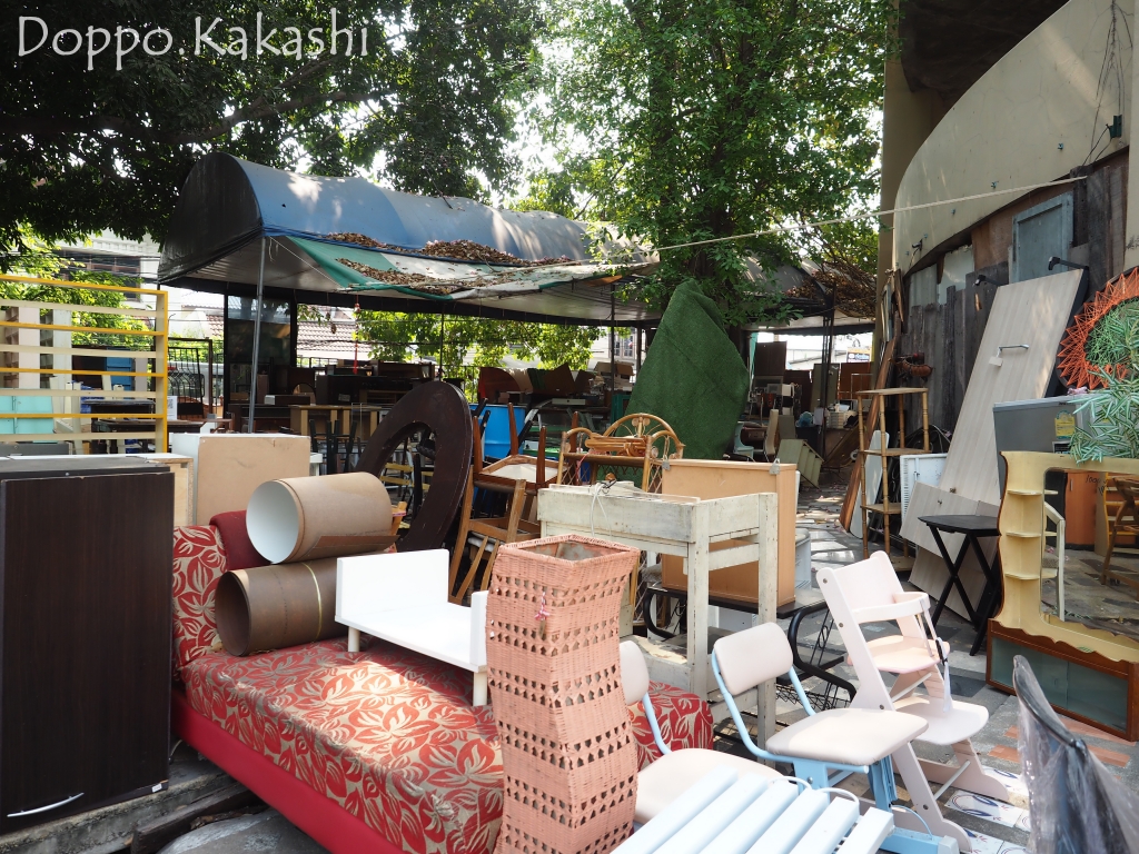 外に置かれた様々な雑貨や家具類・・