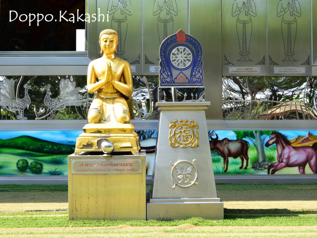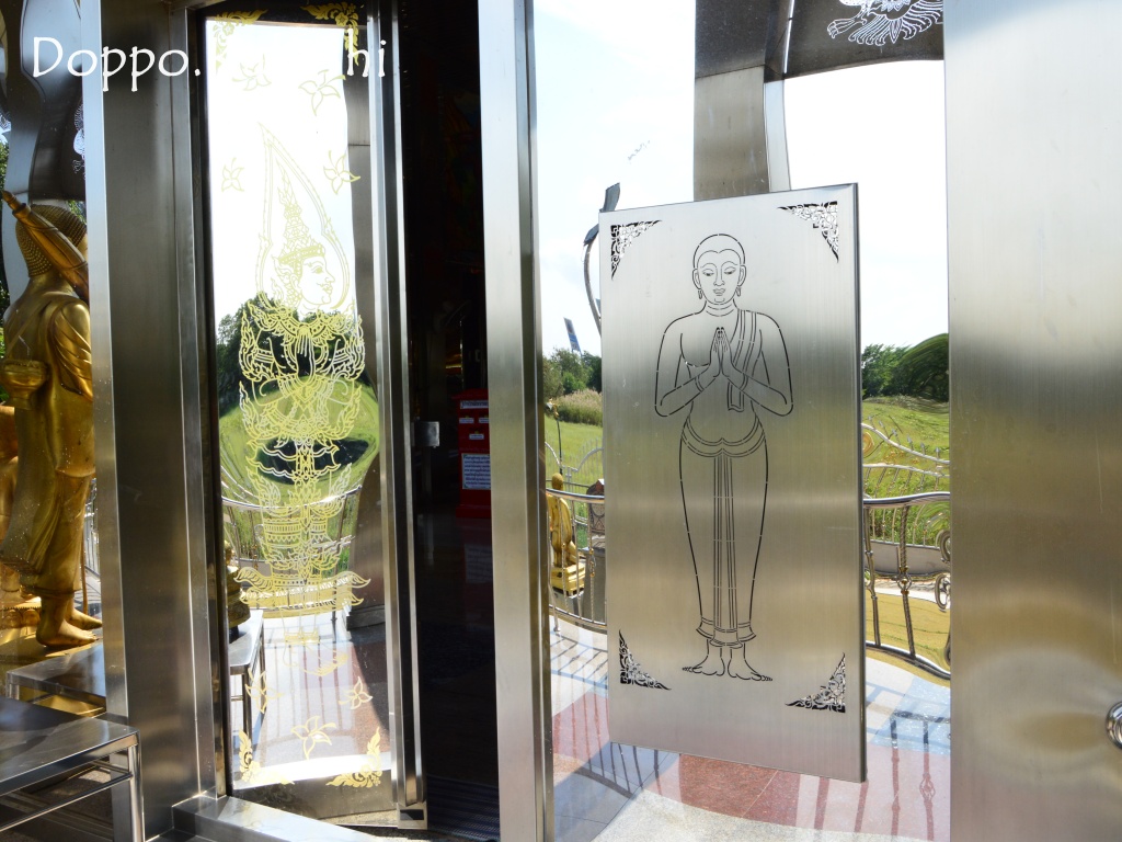 礼拝堂の外側部分には80人の僧侶が彫り込まれており、下側にはエアブラシにて仏様の一生が描かれている