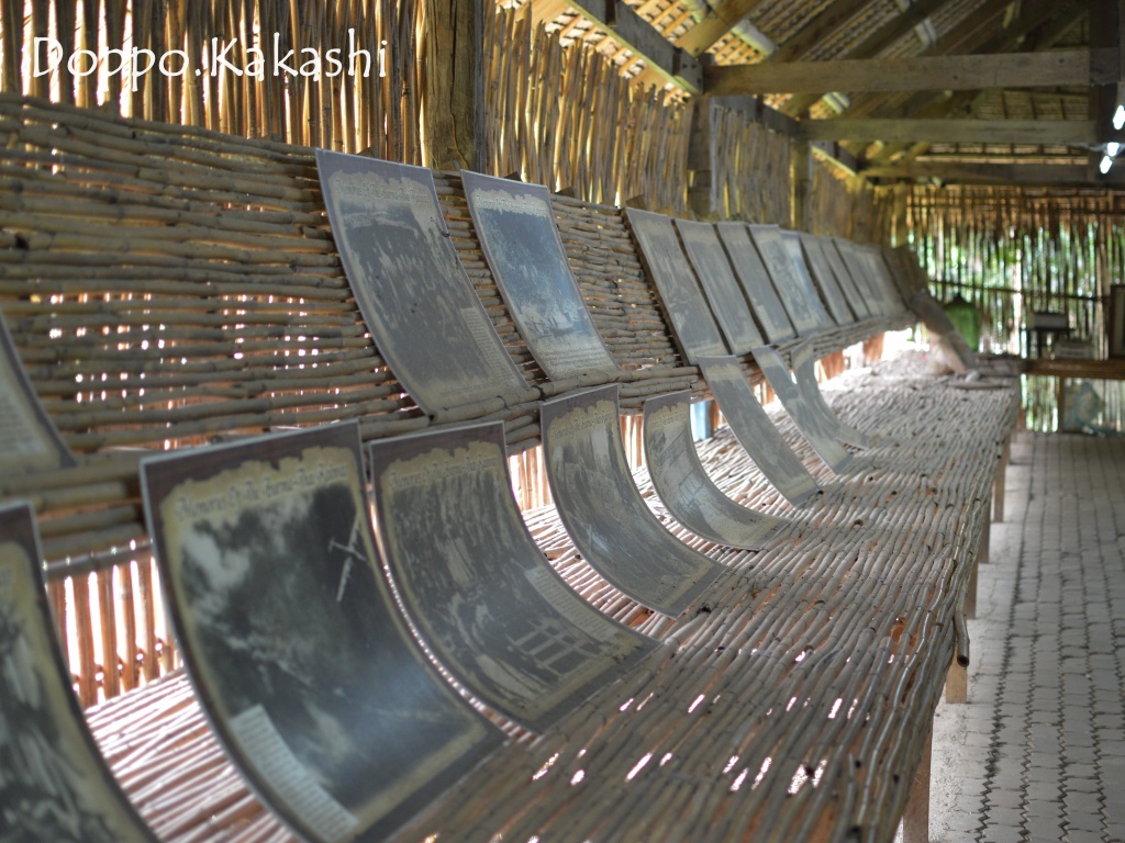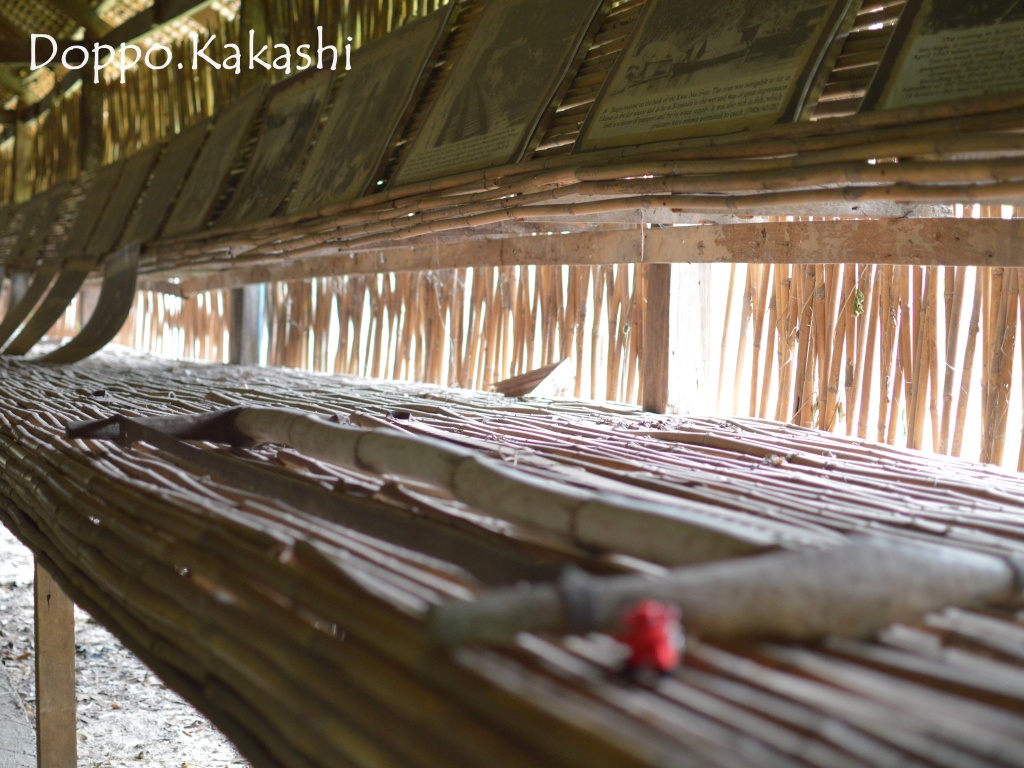 その最後には簡易的な博物館?が存在、泰麺鉄道の建設風景の写真が当時の捕虜たちの宿舎を模した部屋に並べられている