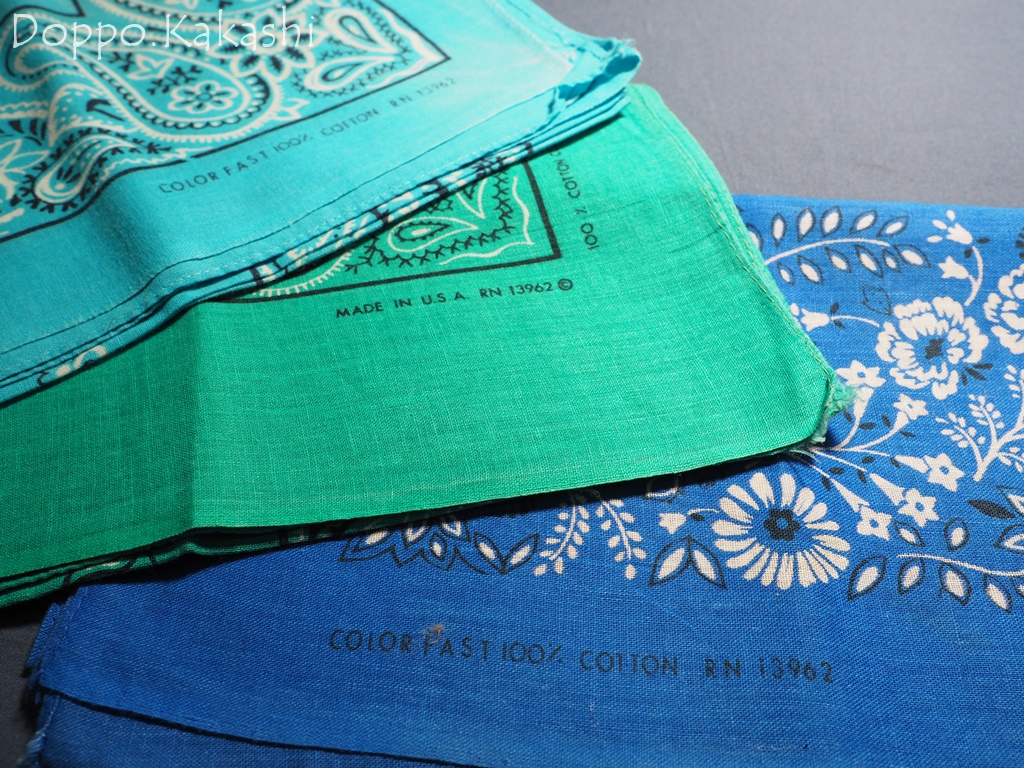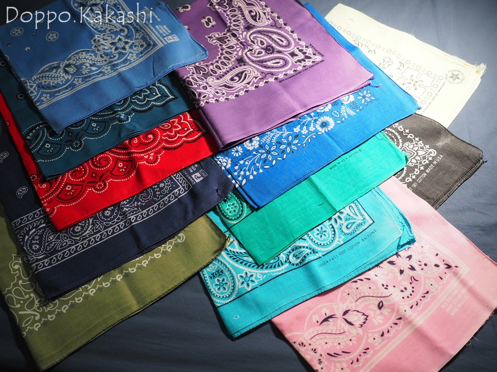 ネット検索すればわかるようにビンテージバンダナは日本では1枚3~4千円くらいで取引されているみたいです