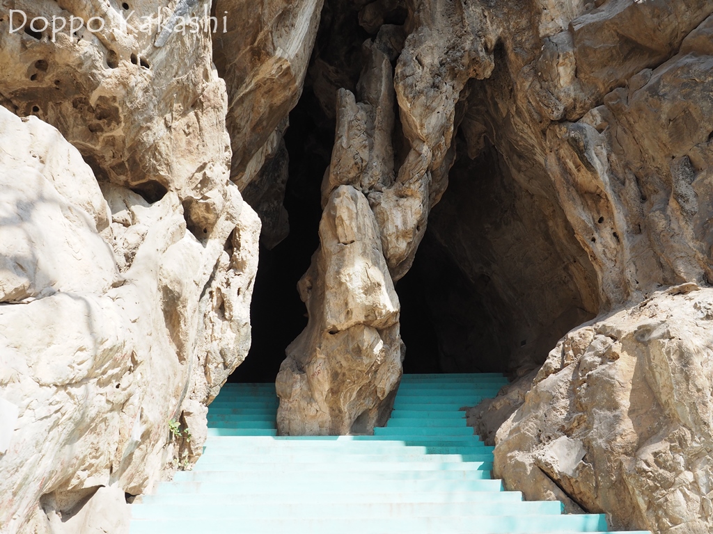 洞窟は奥の階段の先にあるようだ