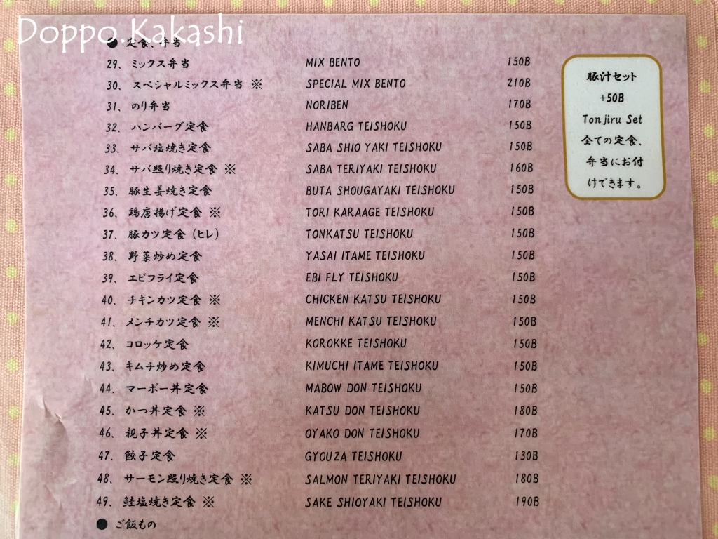 文字のみのメヌーは母国語であるタイ語を完全に排除している