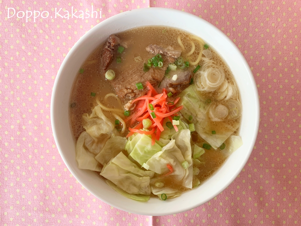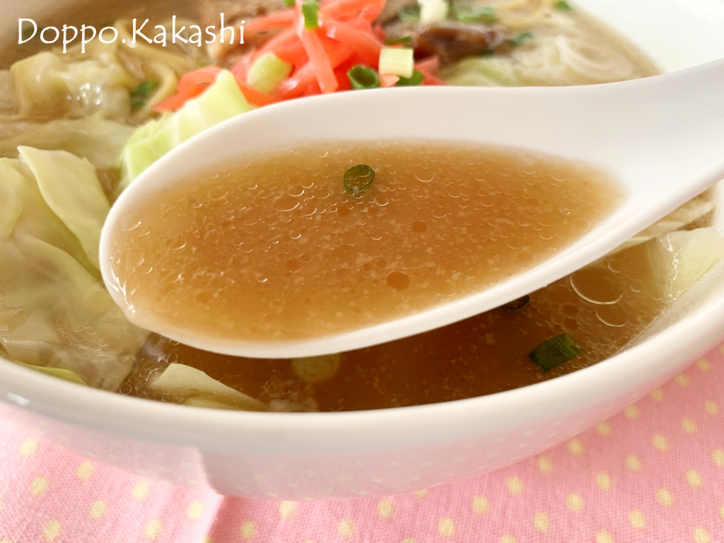 アツアツスープは生姜が効いたとんこつ味かな