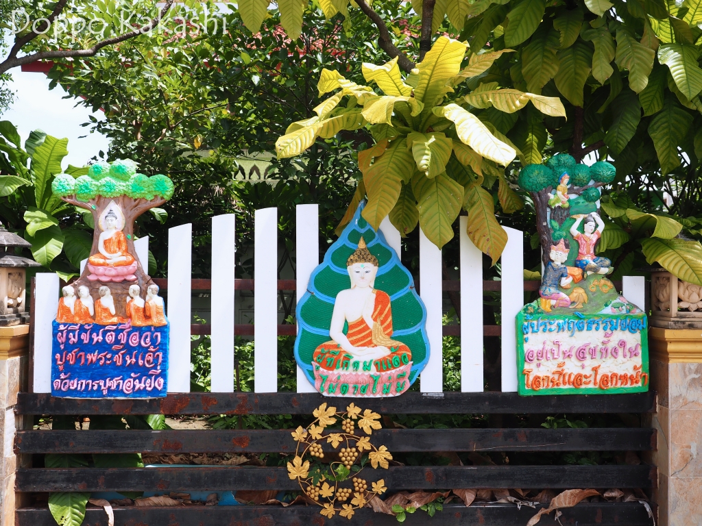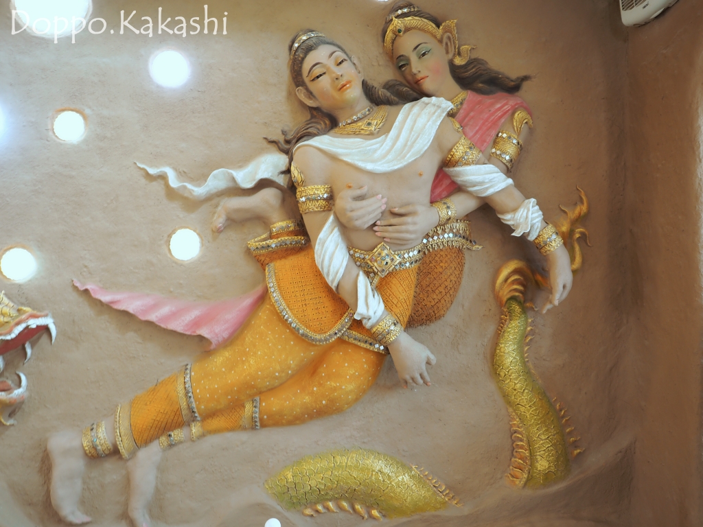 絵画は仏様の物語やタイの伝説の人物など多彩な顔ぶれで、比較的精巧な作りの浮き出し像で構成されている