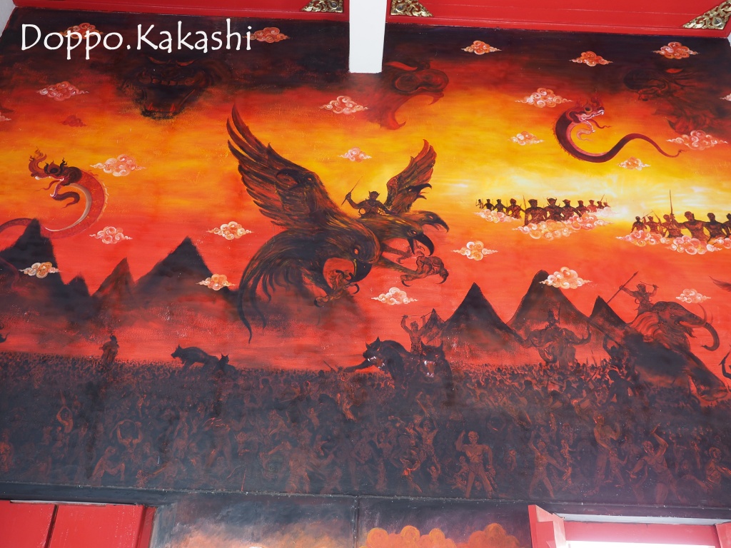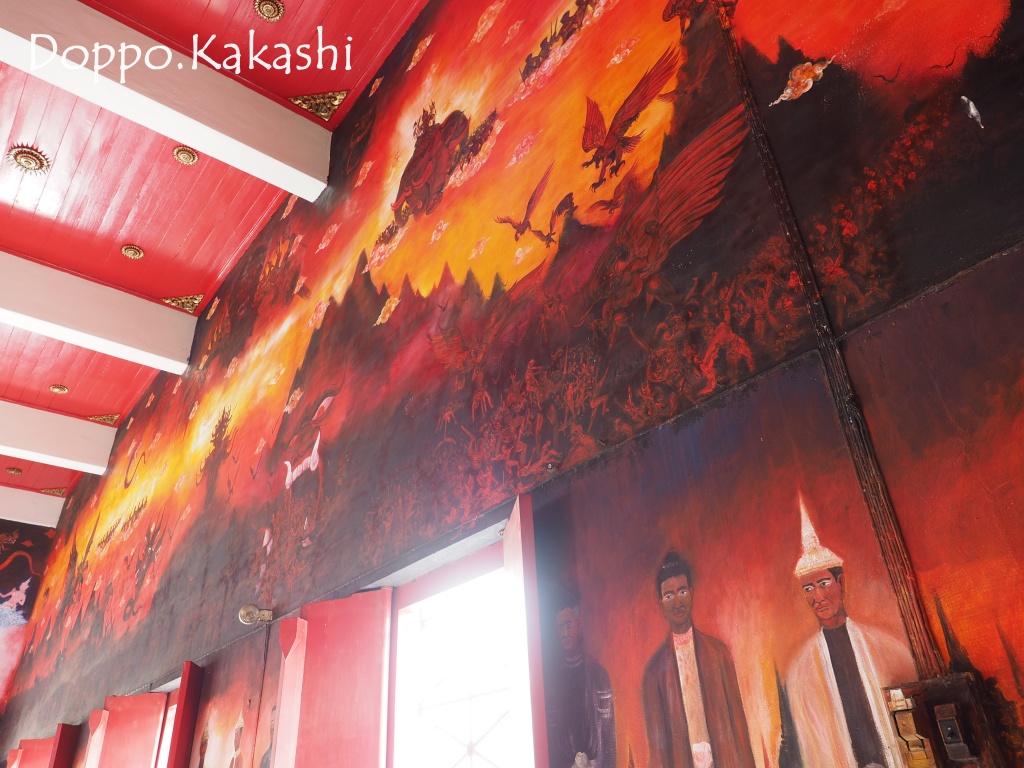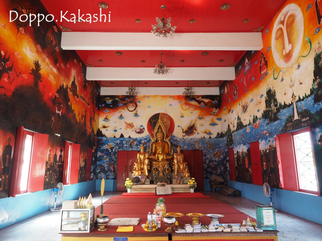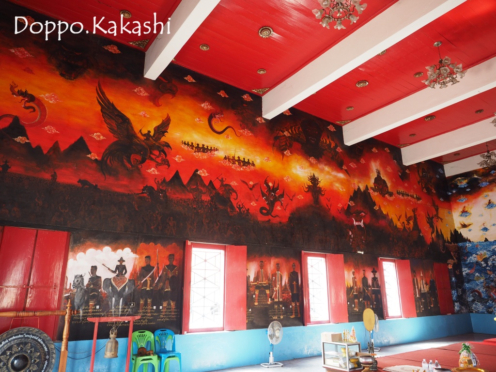 タイのお寺さんの礼拝堂の多くはこのような絵が描かれていることが多い
