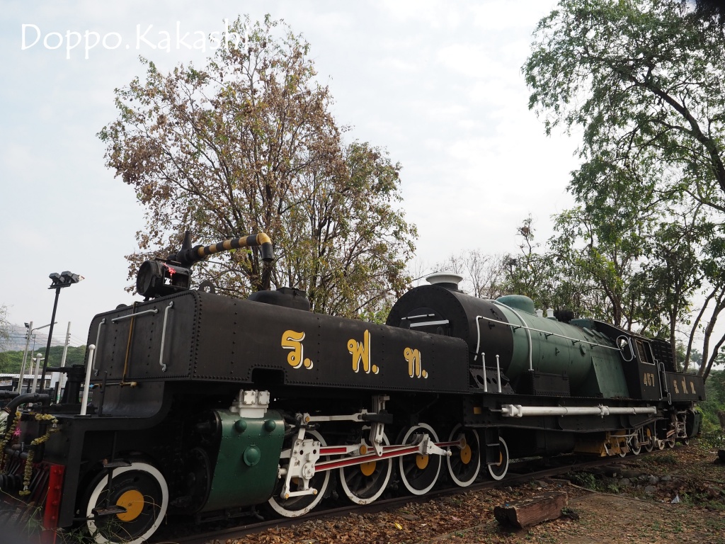 カンチャナブリ駅前にひっそりと置かれる静態保存機