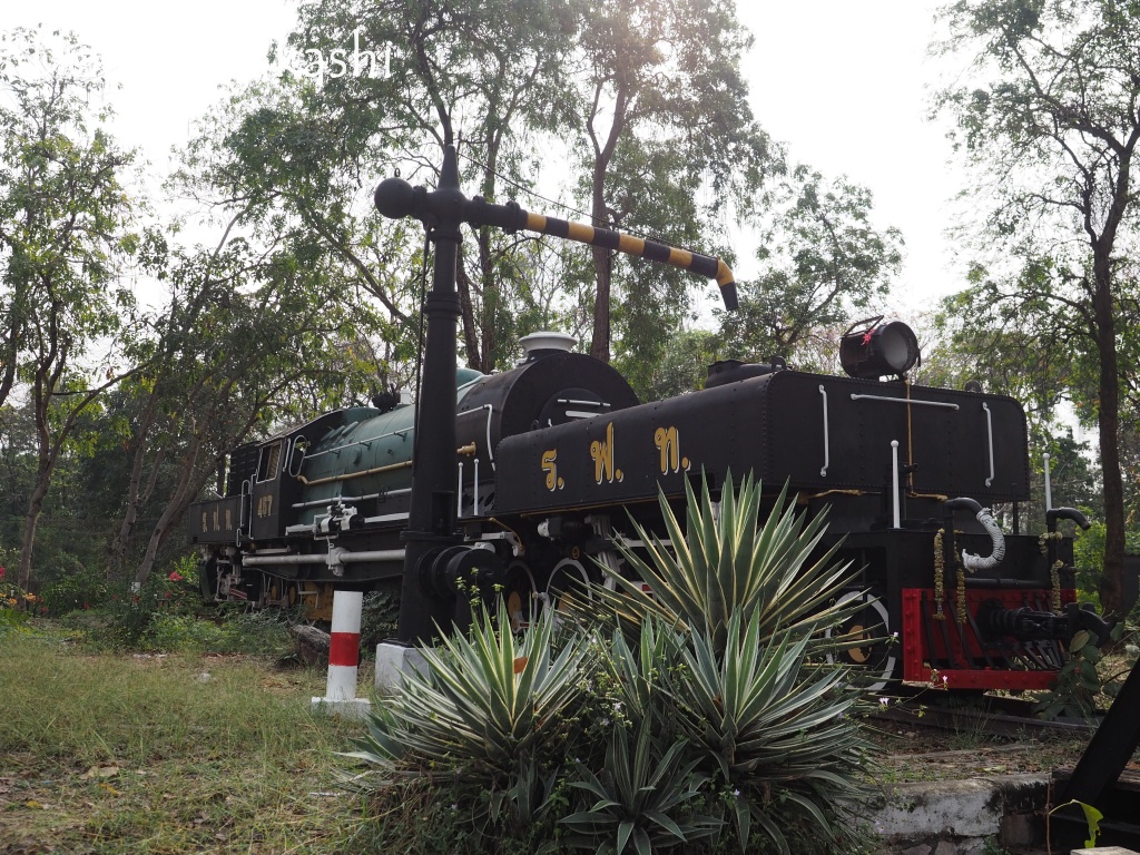 もう少し行くとクウェー川陸橋につくこの駅の前に、静態保存されている蒸気機関車が人知れず設置されているという