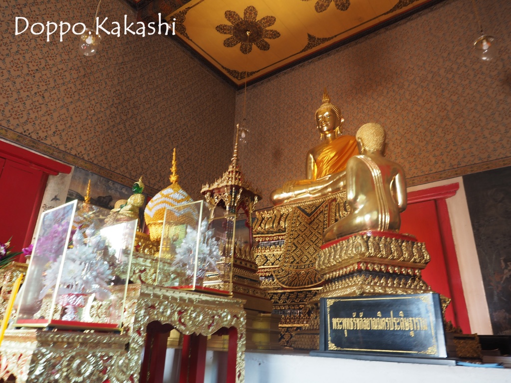 その前には金メッキの二人の僧侶が手を合わせています